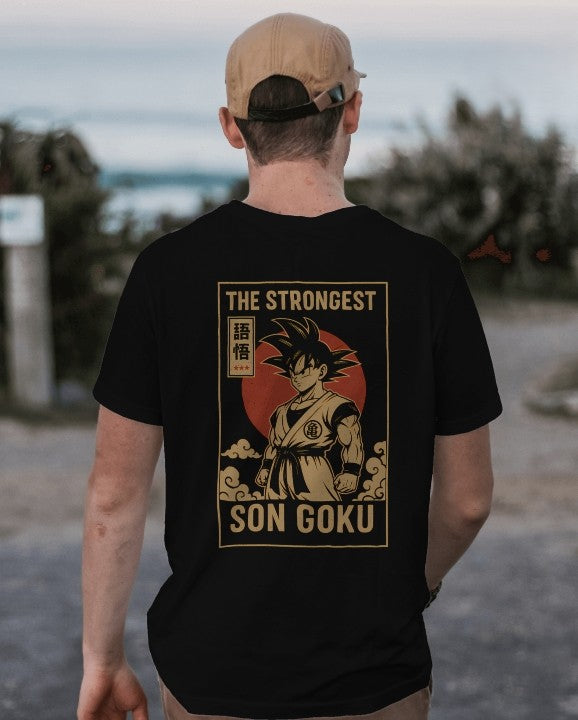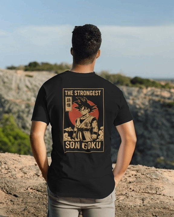 For those who rise above limits. Featuring Goku in a manga poster style with Japanese elements and dynamic visuals, this shirt is a tribute to the Saiyan spirit of growth and resilience.